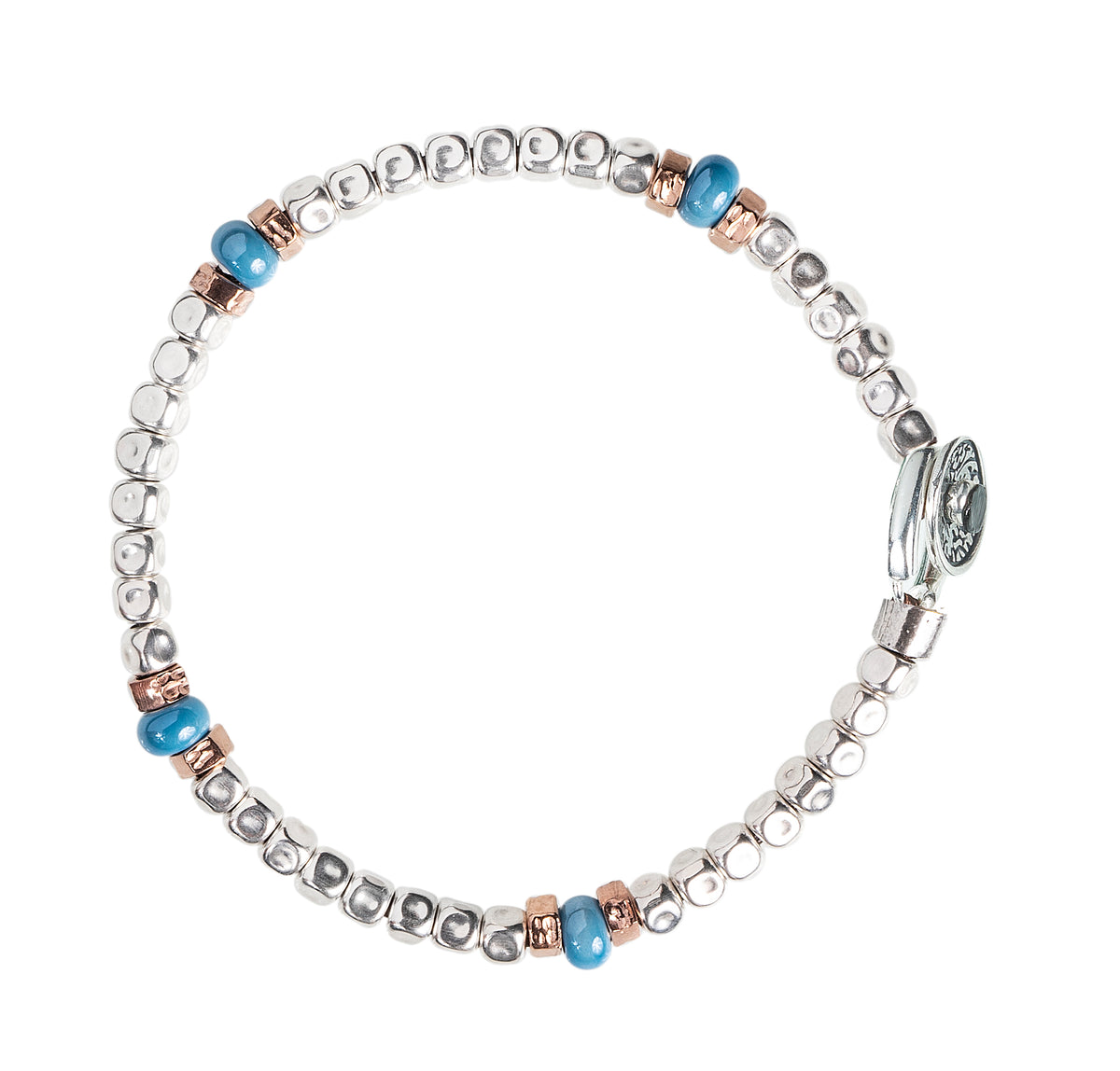 Bracciale Silver Collection 03 con chiusura completamente in Argento 925 e componenti in murrina turchese. Indossabile sia da un Uomo che da una Donna. Questo bracciale silver collection è il regalo perfetto per il tuo partner, adatto ad ogni occasione, come un compleanno o per San Valentino. Emblema di bellezza, eleganza e raffinatezza. I componenti in argento sono anallergici, con il valore inciso come prova di autenticità oltre alla lucentezza che gli dona. Il design del Bracciale Silver collection 03 è moderno e minimalista, da usare sia quotidianamente che in particolari occasioni. In molte teologie e cosmogonie, l'argento è associato alla Luna e a divinità lunari e femminili. Benché chimicamente i due elementi non siano correlati, nell'antichità il mercurio veniva considerato come una specie particolare di argento – da cui il nome tradizionale di argento vivo ed il suo nome latino hydrargyrium (argento liquido). In araldica il colore argento è uno dei due metalli più comuni (assieme all’oro); è cromaticamente rappresentato bianco e come motivo di riempimento (quando uno stemma viene disegnato con la penna) come una superficie liscia, vuota da riempimento (mentre ad esempio il rosso si fa con linee verticali e l’oro con un campo di punti). Simboleggia la borghesia imprenditoriale poiché scintillante, prezioso ma corrompibile se non curato, e materiale di cui erano fatti i soldi di medio valore.